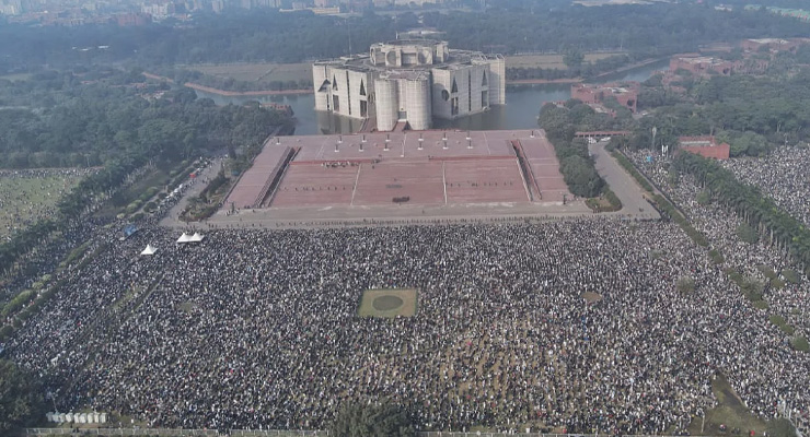 রাজধানী ঢাকায় বিপুল মানুষের উপস্থিতিতে বিএনপির চেয়ারপারসন ও তিনবারের সাবেক প্রধানমন্ত্রী খালেদা জিয়ার জানাজা সম্পন্ন হয়েছে। রাজনৈতিক অঙ্গন থেকে শুরু করে সাধারণ মানুষের অংশগ্রহণে এদিন রাজধানীর গুরুত্বপূর্ণ সড়কগুলোতে দেখা যায় জনসমাগমের বিরল দৃশ্য।
