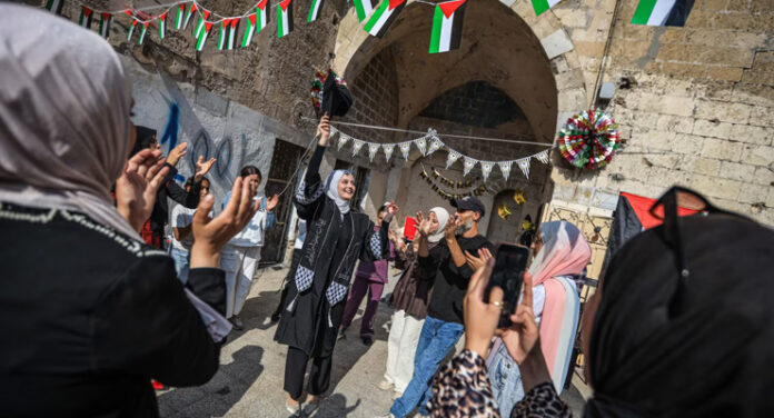 যেমন মাহমুদ এলিয়ান, রাফাহ থেকে সেন্ট্রাল গাজায় স্থানান্তরিত একজন শিক্ষার্থী, স্থানীয় ক্যান্ডি দোকানে দাঁড়িয়ে বলছিলেন, “দুই বছরের যুদ্ধে আমরা এতদিন মিষ্টি খাইনি। আজ মানুষের মধ্যে মিষ্টি বিতরণ করছি।”