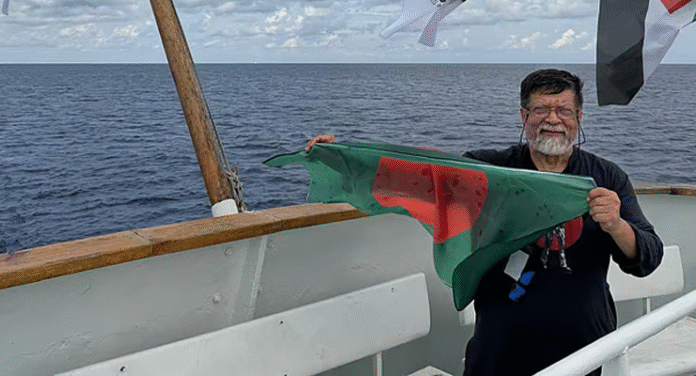 প্রসঙ্গে তিনি উল্লেখ করেছেন যে আজ সকালেই অন্তর্বর্তী সরকারের প্রধান উপদেষ্টার কাছ থেকে শুভেচ্ছাবার্তা পান, যা তাদের গতিশীলতায় নৈতিক সমর্থনের একটি নিদর্শন। তিনি আরও নিশ্চিত করেন যে বর্তমানে তিনি কনশানস নামক নৌযানে অবস্থান করছেন। কনশানস আন্তর্জাতিক উদ্যোগ ‘ফ্রিডম ফ্লোটিলা কোয়ালিশন (এফএফসি)’ এবং ‘থাউজেন্ড ম্যাডলিনস টু গাজা (টিএমটিজি)’ নৌবহরের একটি অংশ হিসেবে গাজা অভিমুখে প্লান করা জাহাজগুলোর মধ্যে একটি।