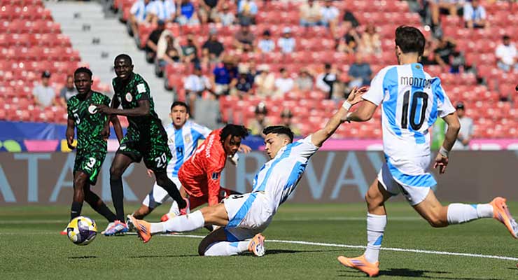 দুই বছর আগের হতাশা যেন আজ রূপ নিয়েছে প্রতিশোধের উৎসবে। অনূর্ধ্ব-২০ বিশ্বকাপের মঞ্চে এবার আগুনঝরা পারফরম্যান্সে সবাইকে তাক লাগিয়ে দিয়েছে আর্জেন্টিনার তরুণরা। সান্তিয়াগোয় অনুষ্ঠিত শেষ ষোলোয় নাইজেরিয়াকে ৪-০ গোলে উড়িয়ে দিয়ে দলটি জায়গা করে নিয়েছে কোয়ার্টার ফাইনালে। দুই বছর আগে আর্জেন্টিনায় আয়োজিত টুর্নামেন্টে ঠিক এই নাইজেরিয়ার কাছেই শেষ ষোলো থেকে বিদায় নিতে হয়েছিল তাদের। আজ সেই পুরনো ক্ষতই তারা সেলাই করল এক জোড়া গোলে নয়, বরং গোলবন্যায়।
