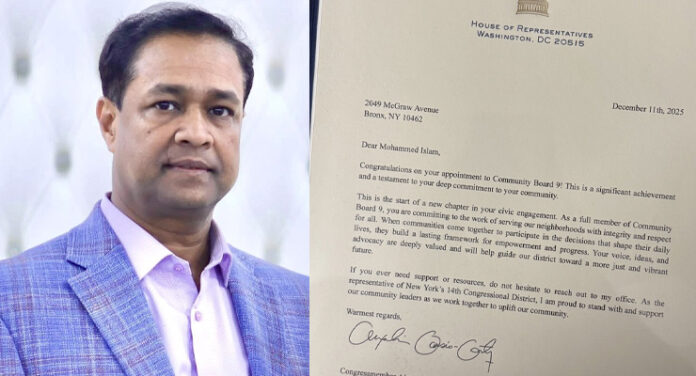 ব্রঙ্কসে কংগ্রেসনাল স্বীকৃতি পেলেন মামুন