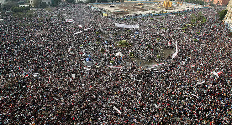 আরব বসন্তের সময় ২০১১ সালের ২৫ জানুয়ারি থেকে শুরু হওয়া আন্দোলন টানা ১৮ দিন স্থায়ী হয়। অবশেষে ১১ ফেব্রুয়ারি রাষ্ট্রপ্রধান পদত্যাগ করে সেনাবাহিনীর হাতে ক্ষমতা হস্তান্তর করেন। এই সময় সামাজিক যোগাযোগমাধ্যম ও মোবাইল ফোনের মাধ্যমে আন্দোলনের ছবি ও ভিডিও বিশ্বজুড়ে ছড়িয়ে পড়ে, যা আন্তর্জাতিক মনোযোগ আকর্ষণে বড় ভূমিকা রাখে।
